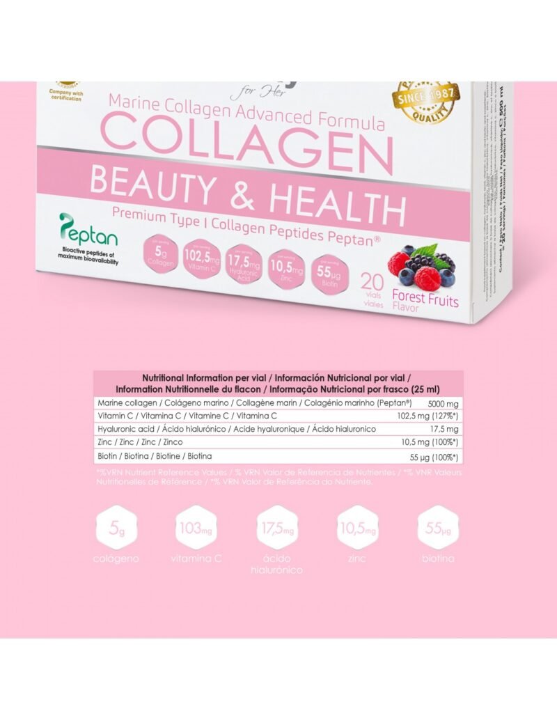 Potencia tu belleza desde el interior con Collagen Beauty & Health, una fórmula líquida premium con colágeno marino Peptan®, biotina, ácido hialurónico, vitamina C y zinc, diseñada para mejorar visiblemente la salud de tu piel, cabello, uñas y articulaciones.